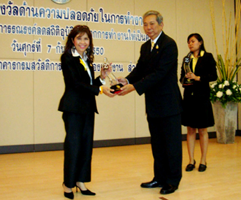 His exellency Apai Chantanajulak Minister of Labour Ministry presents to Lotushall Mining Heavy Engineering Construction Co., Ltd. a Zero-Accident Award ( During May 1st 2001 - Febuary 28th 2007 ) compliance with the Labour Ministry's Zero - Accident Campaign.